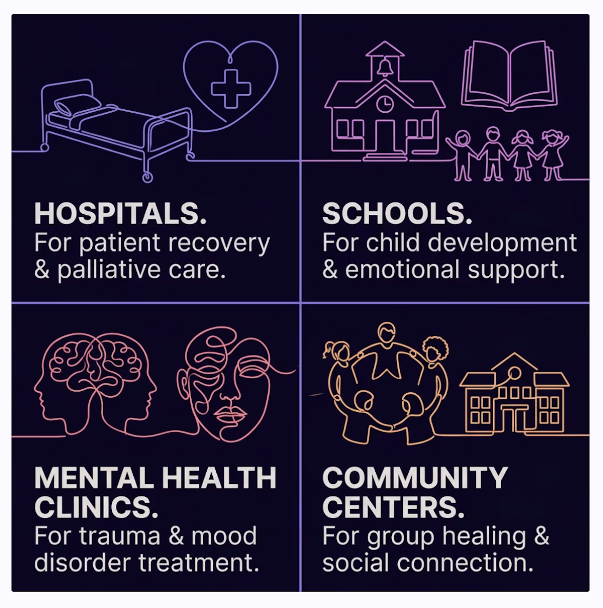 Rooted in the belief that creativity unlocks what words alone cannot — accessing deeper layers of the human experience.